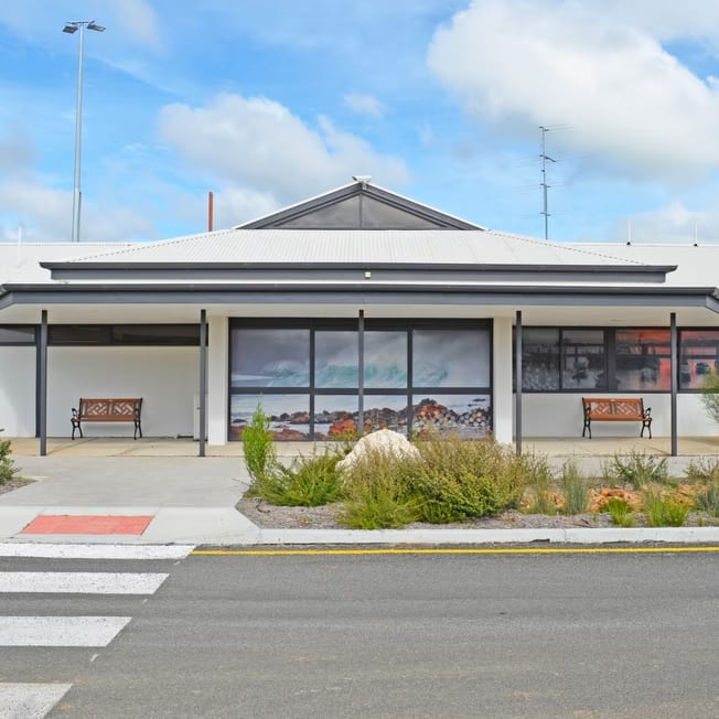 Inside and outside of the Kangaroo Island Airport, you can see giant stickers on glass, giving vibrant colour to the space and a uniquely Kangaroo Island feel.