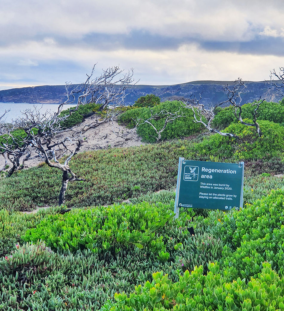 Printed on corflute with punched eyelets, these temporary signs have been helping Flinders Chase recover for over two years now with little sign of aging or deterioration. The only thing that's changed is the regrowth itself!